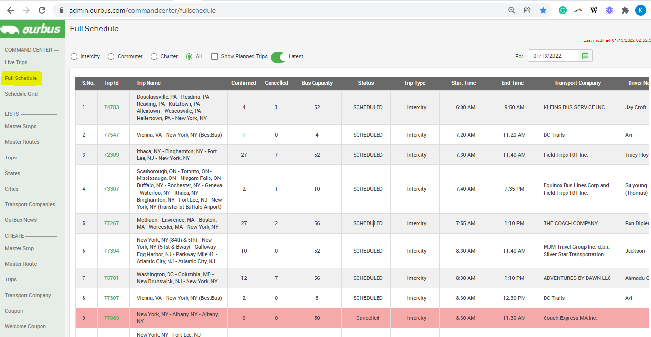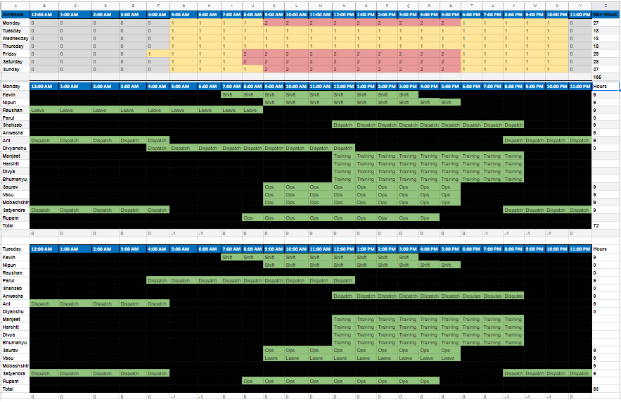 To figure out which dispatcher worked from what time till what time and on what trips the previous day. This can be done by the help of the weekly roster and admin panel full schedule and also by the 'Assigned Dispatcher(s)' column (new feature) on the full schedule.