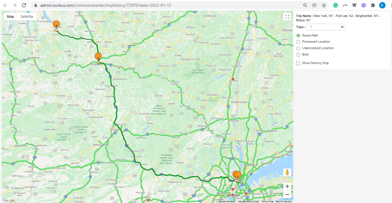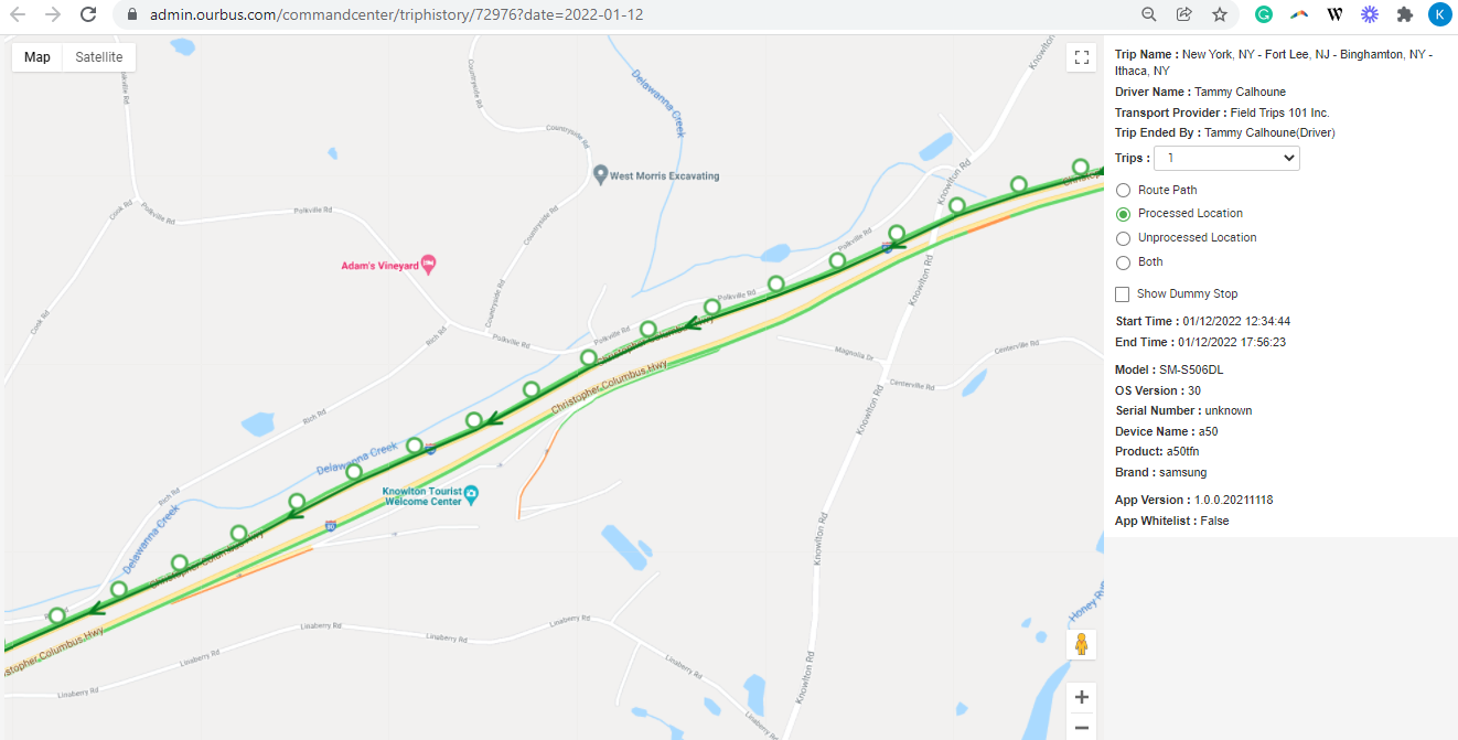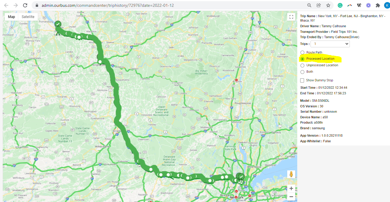 Click on ‘Processed locations’ and it shows up the travelling history (route) of the bus.