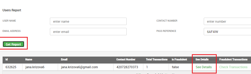 Entering the customer's contact number, the pass reference (ticket code), or an email address will allow you to view the account details.